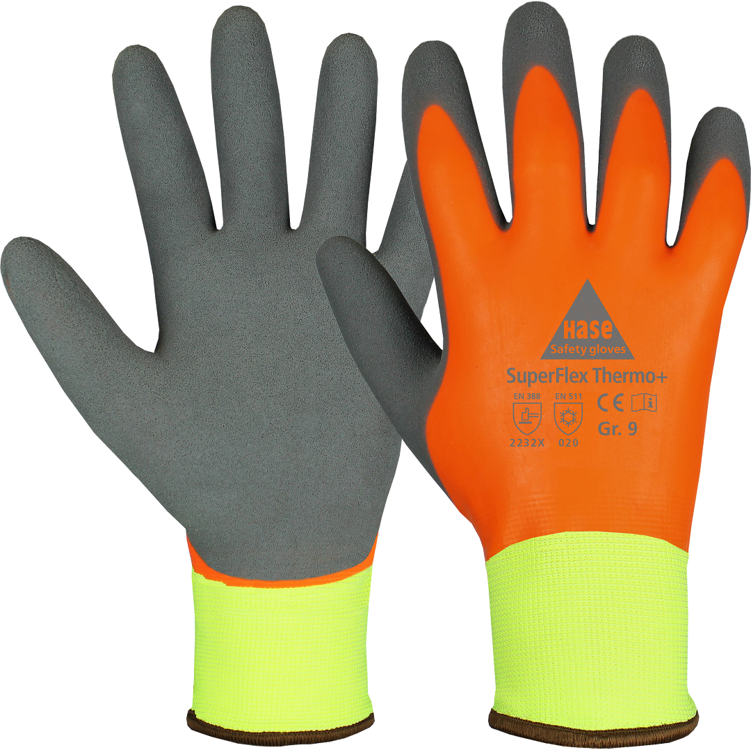 SuperFlex Thermo+ Winter Arbeitshandschuhe gefüttert wasserdichtGR. 8-9-10-11Beschreibung:Winter-/Montagehandschuh aus Polyester mit LatexVollbeschichtung und Latexschaum Beschichtung mitSandyfinish an Handinnenfläche, Daumen undFingerkuppen, angerautes Polyacryl-WintervollfutterEN388 2232XEN511 020